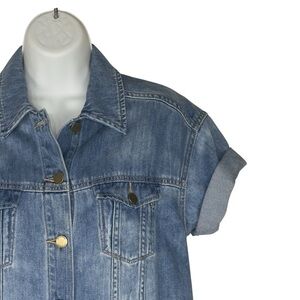Liverpool Faded Blue Distressed Short Sleeve Denim Jean Shirt Jacket Extra Small