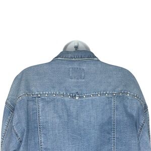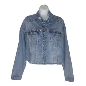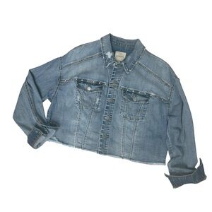 Liverpool Faded Blue Distressed Wide Long Sleeve Crop Denim Jean Jacket Medium