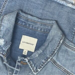 Liverpool Faded Blue Distressed Wide Long Sleeve Crop Denim Jean Jacket is in very good preloved condition.