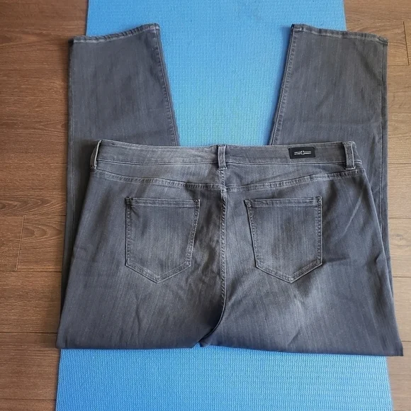 five pockets plus size stretch jeans in great preowned condition. In gray/charcoal.