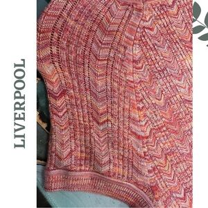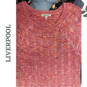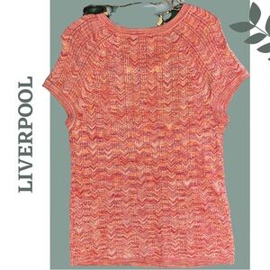 Liverpool done knit multi color shirt sleeve sweater. Round neck. Color is called Sugar Coral