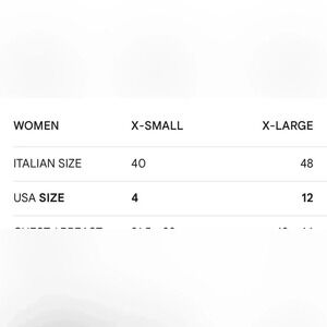 Ladies size 48 (Italian) converts to a U.S. XL, please review measurements provided