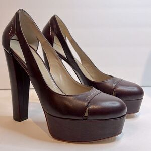 Liviana Conti Burgundy Leather Platform Heel Shoes Size 38