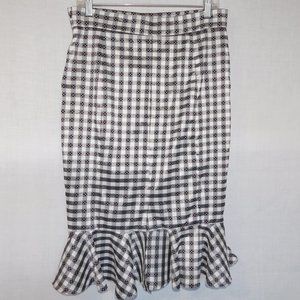 Living Dead Souls Womens XL Black White Gingham check Pencil Skirt Hem Ruffle