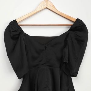 - Lulus lightweight and textured satiny woven fabric top with a square neckline and short puff sleeves with elastic at the shoulders