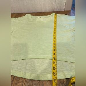 Soft light green cropped T-shirt with short sleeves, crew neckline, and raw-finish hem in the back. Relaxed and minimalist look. Excellent condition.