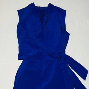 Liz Claiborne 100% Silk Sleeveless Wrap Midi Dress - Blue - Size Medium - Good condition, a few small spots along seams.