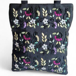 Liz Claiborne Black Beaded Embroidered Mini Tote – Small & Chic