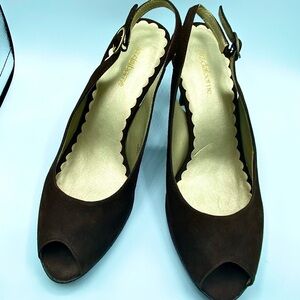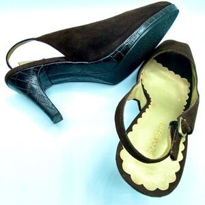 Liz Claiborne Dark Brown Slingback Croc-Embossed Heels and open toe US 9M