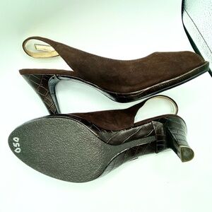 Liz Claiborne Dark Brown Slingback Croc-Embossed Heels and open toe US 9M