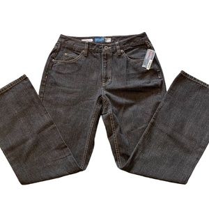 Size 10 regular fit Liz Claiborne bootcut fit jeans in a grainy dark black wash. New with tags, never worn. 100% cotton, denim is medium weight and stiffer with little to no stretch.