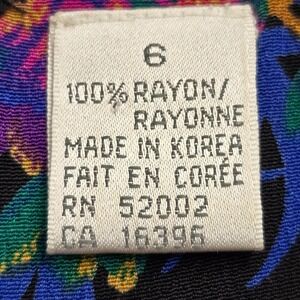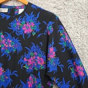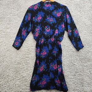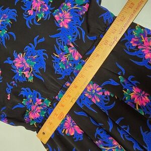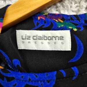 Liz Claiborne Dress Womens 6 Black Colorful Floral Rayon Mini Pleated 80s Retro