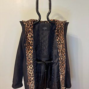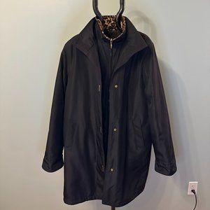 Liz Claiborne Ladies Mid Length Jacket with Leopard Trim