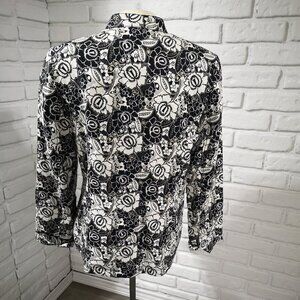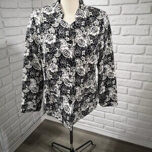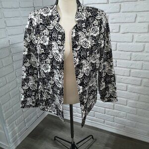 Liz Claiborne Ladies Size Large 100% Linen Black/White/Tan Blazer