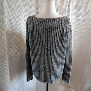 Liz Claiborne Liz & Co Vintage Grey Cable Knit Sweater Metallic Thread Medium