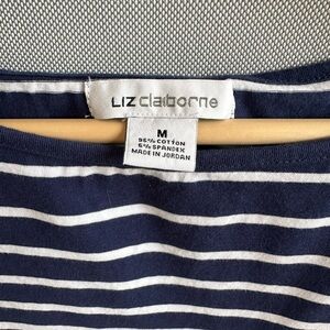 Liz Claiborne | Navy Blue & White Striped Nautical Cotton top
