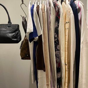 Includes: Tops, blouses, sweaters, unstructured blazers, a hoodie and purses