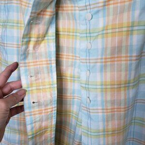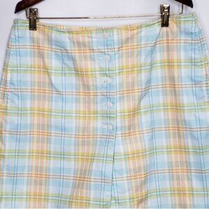 Golf skort Button front with zippered close in a pretty pastel coloured plaid check. Pockets, back pocket is still stitched closed. 98% cotton 2% Lycra Spandex