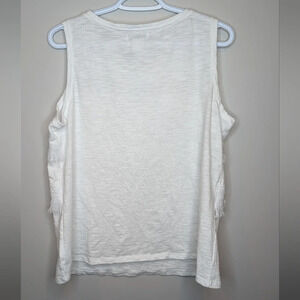 Liz Claiborne Petite White Sleeveless Cotton Blend Fringed Tank Top PL