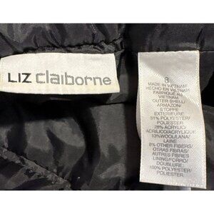 This wool-blend mini skirt by Liz Claiborne features a classic plaid design in black and gray. With belt loops and front pockets, it combines elegance with functionality, making it a versatile addition to any wardrobe.