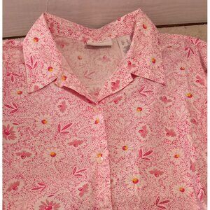 Liz Claiborne Shirt Lizsport Womens XL Pink Floral Short Sleeve Button Up Top