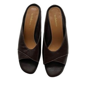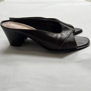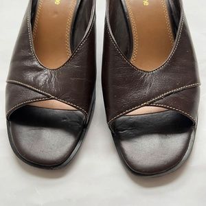 Liz Claiborne Shoes Slip on Mules Size 8 Brown Leather Block Heels Peep Toe