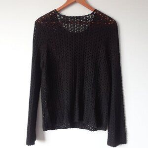 Lovely crochet open style cardigan or over top from Liz Claiborne made out of natural silk and rayon. Features a 3 button closure at the top.