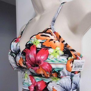 Adjustable straps, lightly padded lined cups, goldtone hardware