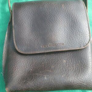 Liz Claiborne Thick Leather Distressed Style Shoulder Pouch Bag. In very good to excellent condition with no damages. Completely unisex fashion friendly. Perfect for the necessities. A grat travel bag as well. It measures approx. 7.5" H x 7.5" W x 2" deep/thick. The drop strap measures approx. 24" long. The strap is not adjustable.