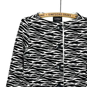 Liz Claiborne Womens Small Petite Zebra Print Button Up Sweater Black White
