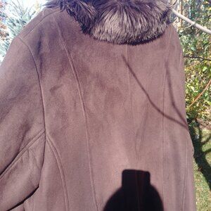 Liz Claiborne XL Vegan Suede and Shaggy Fur Chocolate Brown Jacket Coat