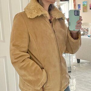 Liz Claiborne minky-soft shearling buckskin polyester jacket Womens L Macy’s