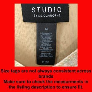 • Tag Size: 14. Approximate measurements taken lying flat: Bust 20”/Waist 19”/Length from Shoulder 23”