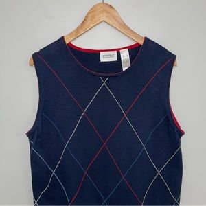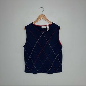 Liz Clairborne Golf Sweater Vest Women's Size Large Navy Red Argyle Sleeveless