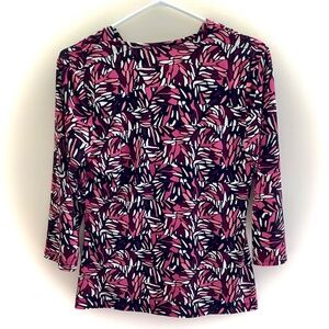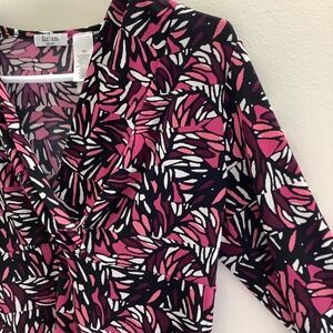A stunning cross my heart V neck top in a stain glass fuchsia, purple, black and white pattern ๐๐๐ค๐ค