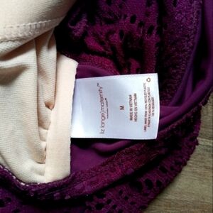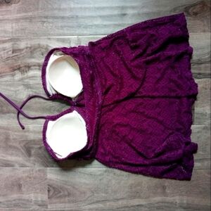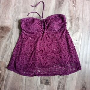 Liz Lange maternity plum halter crochet detail bathing suit top