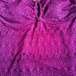 excellent condition, beautiful purple color. Halter style with sheer lace detail on bottom. Size medium