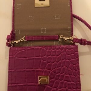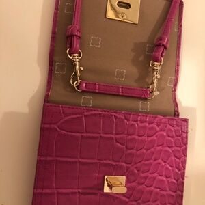 Great vintage wallet to either carry it over the shoulder or in a bag..the wallet has never been used; it is in a perfect condition. The width is 5.5 in and lengrh a little bit over 5 in