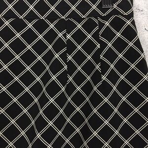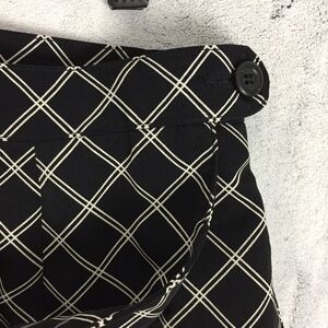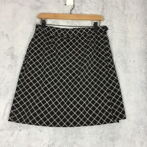 Liz Golf by Liz Claiborne Skort (Skirt / Short combo). Women's Size 10. 100% Poly. Black with cross pane pattern. Cross over front with buttons. Open on one side to access pockets in shorts. Shorts have regular zipper front. Anti-wrinkle. Double darted back hips for shaping.