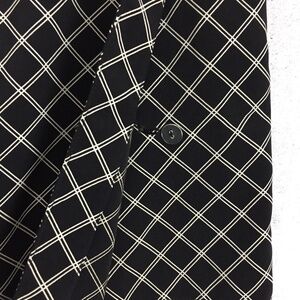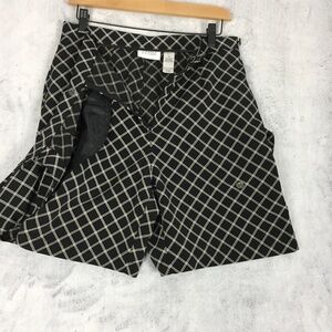 Liz Golf by Liz Claiborne Skort (Skirt / Short combo). Women's Size 10. 100% Poly. Black with cross pane pattern. Cross over front with buttons. Open on one side to access pockets in shorts. Shorts have regular zipper front. Anti-wrinkle. Double darted back hips for shaping.
