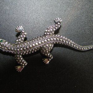 Cute lizard / gecko / salamander marquisite brooch - vintage