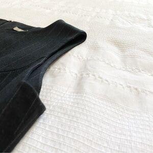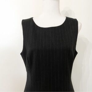 LK BENNETT VINTAGE DARK GREY PINSTRIPES SLEEVELESS SHEATH FORMAL DRESS, a high quality designer LK Bennett dark grey & white pinstripes pattern allover sleeveless sheath shift formal dress - zip up in the back- fully lined- round neckline - midi length, perfect day to night dress to go to work at the office for a serious formal business look and for a classy, classic, sophisticated night out for a date or a dinner at a restaurant. Church and funerals appropriate. Holiday's season go to dress, versatile and timeless.