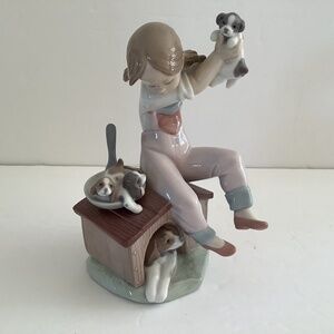 Lladro Porcelain Figurine #7621 Vintage Pick of the Litter Girl with puppies