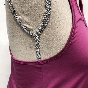 Size medium, gorgeous raspberry colour! Only sign of wear is very slight stain in both armpit, as shown in pics.