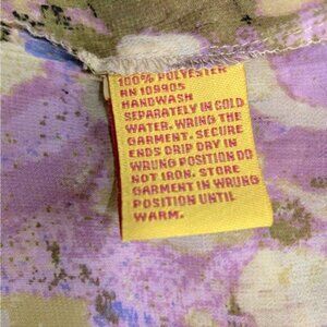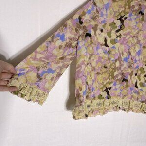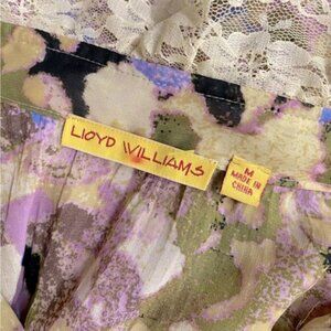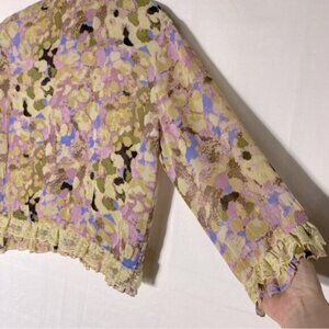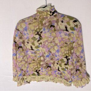 Lloyd Williams Yellow Purple Semi Sheer Abstract Print Button Up Mock Neck Top M