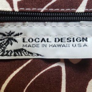 Local Design - Shoulder Purse - made in Hawaii - brown, white & beige - Pre-worn. The purse is 6.25in by 4.85in. Makes for a light shoulder back great for bills and a few cards. If you have any questions, message me. I'll be glad to get back to you. It has a flowery design with Brown, White and Beige colors.