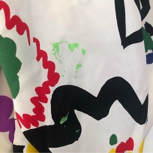 This piece is stunning. I bought it to wear to an event (event had lime green paint) and unfortunately I got some on this wonderful dress. It kinda gets lost in the pattern of the dress but it’s there. Have not tried to take it to a dry cleaner yet…