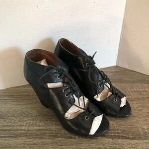 Gorgeous lace front wedge sandals made from leather. Black exterior with Nude interior. Size ladies 39. Made in Portugal.