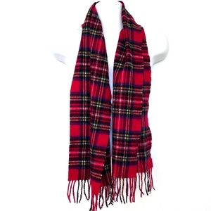 Lochmere 100% Cashmere Scarf w Fringe Rectangle RED BLUE Yellow Soft