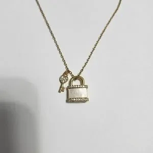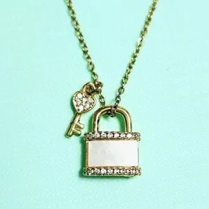 Stylish lock and key necklace made with Mother of Pearl and adjustable chain.